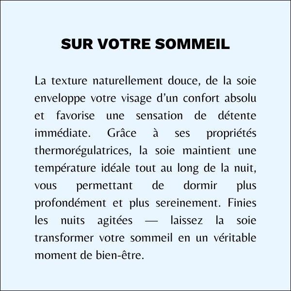Nous travaillons une soie d’exception, sélectionnée pour sa douceur, son éclat et ses bienfaits sur la peau et les cheveux.